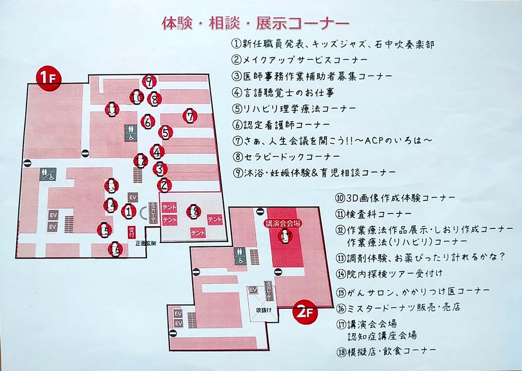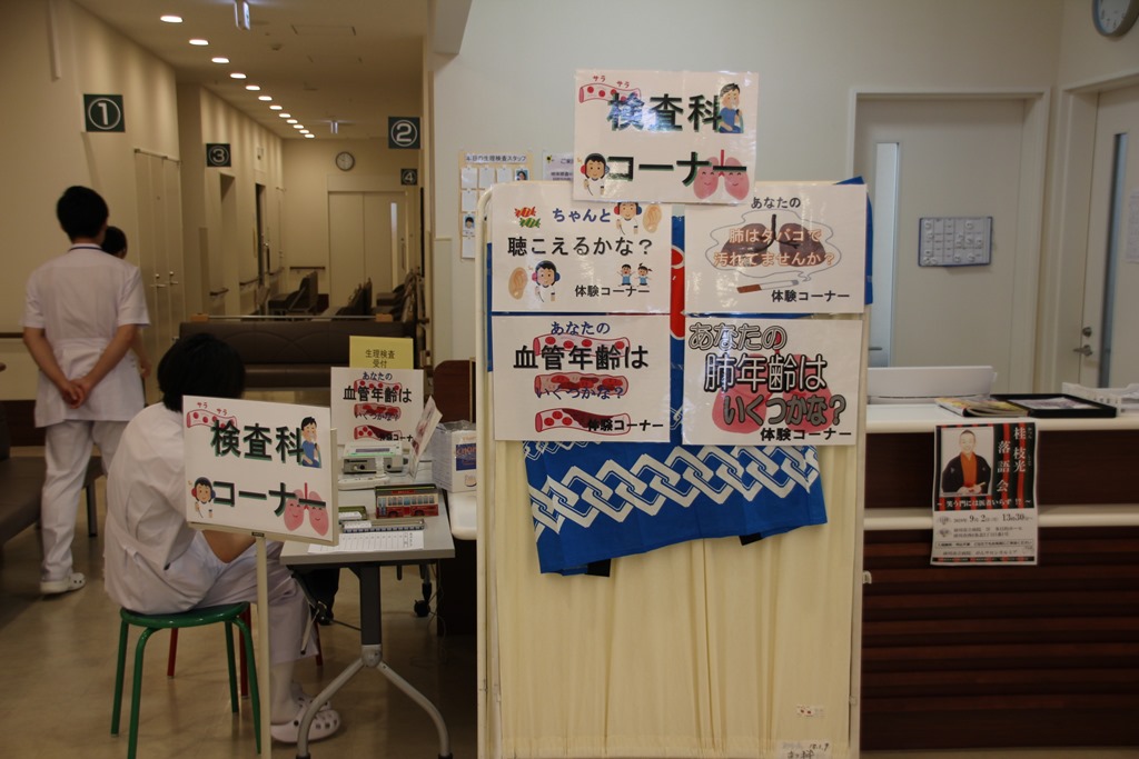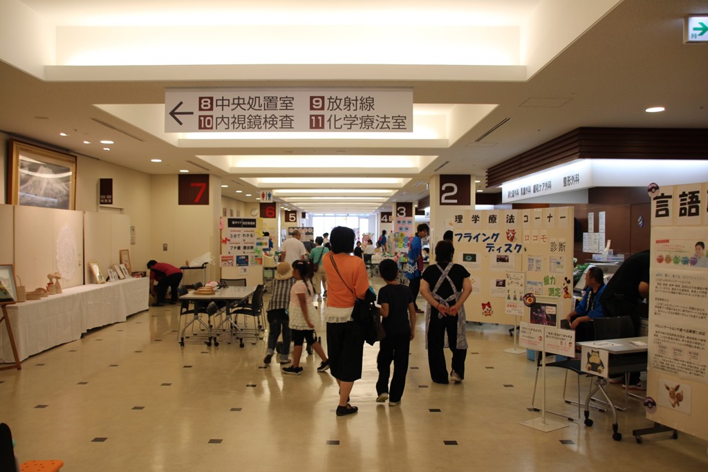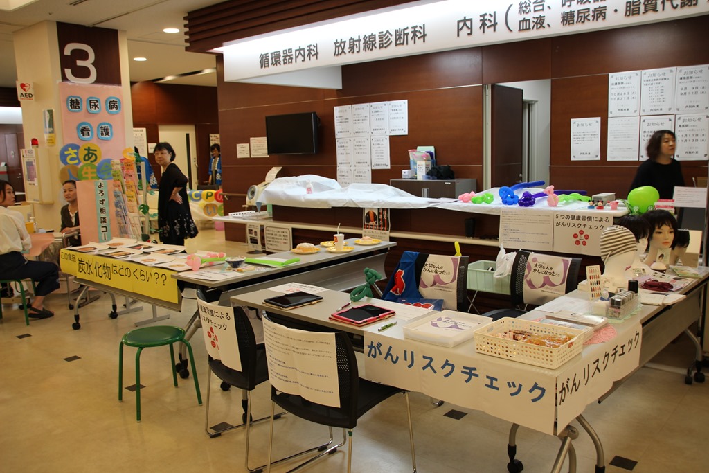 いつもは待合の椅子が並ぶ外来待合室ですが、いろいろなコーナーが並びました。