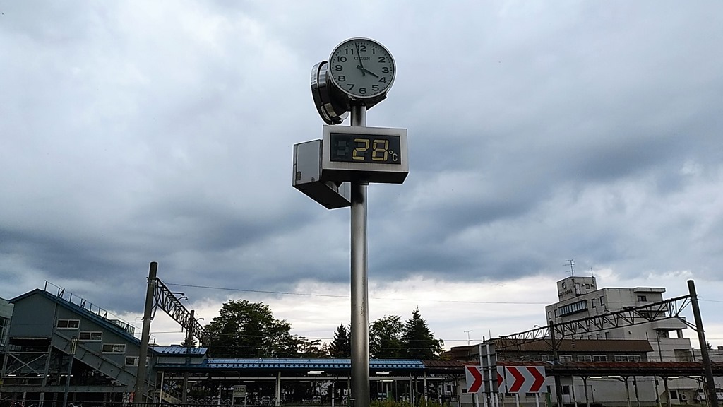 写真は地域交流センター「ゆう」前の温度計ですが、市役所を出て午後4時前で28℃とは9月に入ってあまりないと思います。