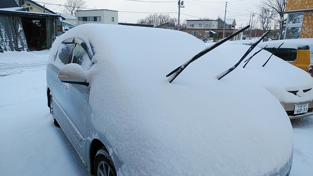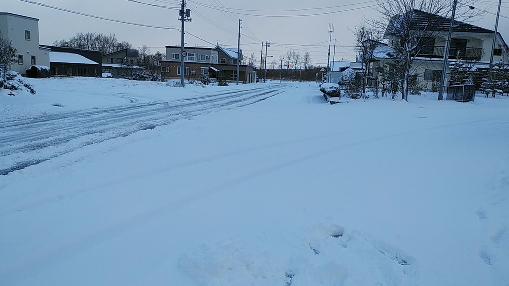 2枚とも午前7時頃に撮ったものですが、その後も降り続けいます。まだ、積もった雪が解けない状態になる「根雪」にはならないと思いますが、今日だけで相当積もりました。