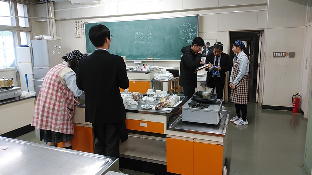 午後2時過ぎに行きましたがカフェは大賑わい。家庭科の山本先生にうかがうと、30人ずつ準備した二つのメニューは予約で売り切れだそう。