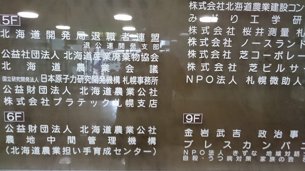 道通(北海道通信)ピルですが、正面玄関のネームプレートを見ると一度ならず訪問しなければならないビルでした。