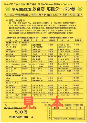 応援クーポン券は本日(8日)から30日まで観光協会の事務所で配布し、月~土曜日の午前9時から午後5時まで。