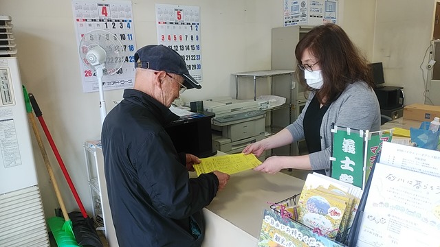 本日9時から300枚分しか配布できませんが、様子を見に事務所に行ってきました。早速、受け取りに来られている方々がおられて、午前11時現在で100枚近く配布されていました。