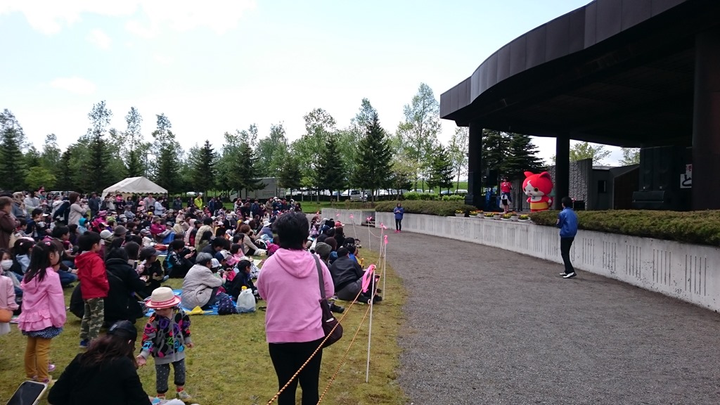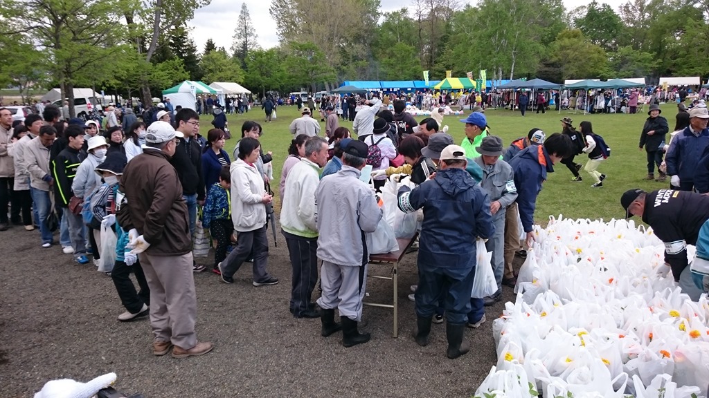 晴れていれば、もっとたくさんの皆さんが来場されていたと思います。それでも、それぞれのブース、多種なイベント、特に花の苗(マリーゴールドなど3種類が700袋、アジサイ100袋)の無料配布に長蛇の列ができていましたし、子ども達にお馴染みキャラクターショーも人気でした。