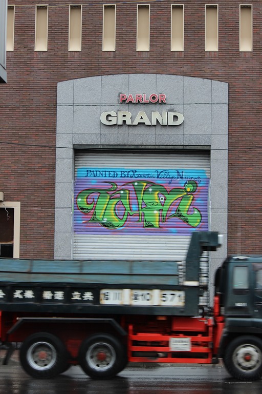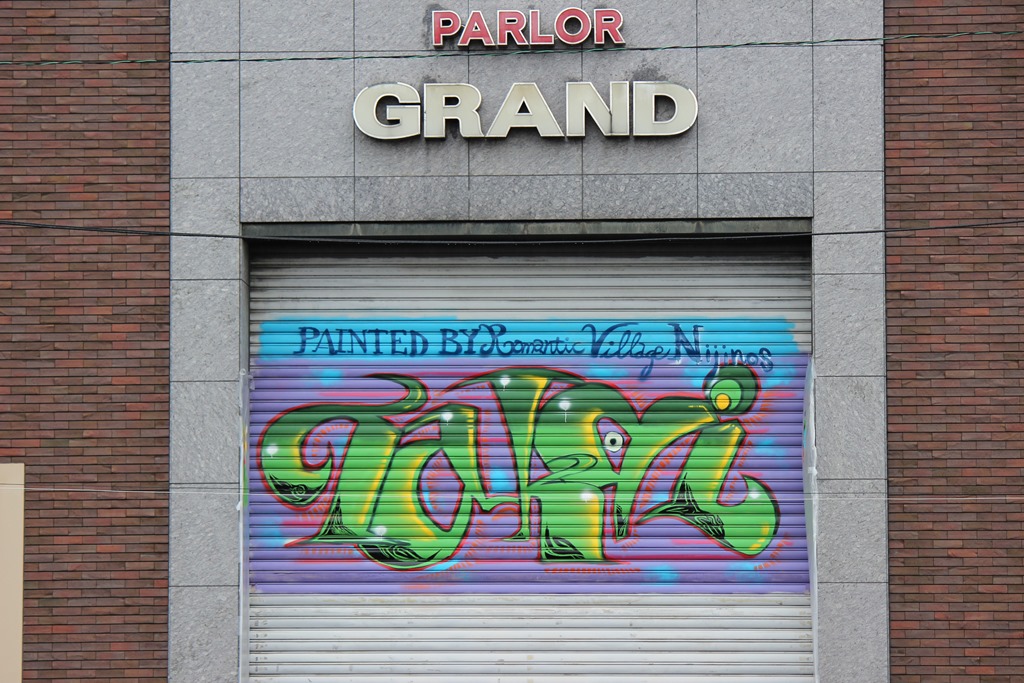 現在、描かれているイラストについては「SuBACo」のフェイスブックをご覧ください。このイベントの趣旨、これからの動きは砂川市のHP『「シャッターアート」デザイン募集中!』でどうぞ。