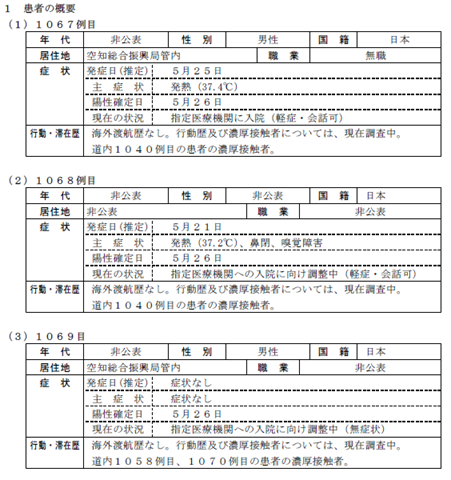 メッセージによりますと「空知総合振興局管内では、連休明けの5月12日以降本日までに(15日間で)9名(12日2名、19日1名、21日1名、22日1名、24日1名、本日26日3名)の感染者が確認され、感染者の増加が続いております。」と書かれています。