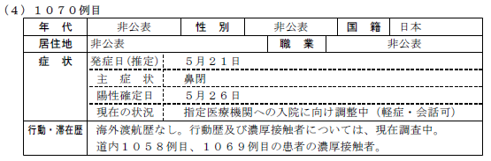 以上になりますが、4名の内2名は空知総合振興局管内と書かれています。また、2名の方は居住地は非公表ですが、濃厚接触者を見ると関連しているのが分かります。