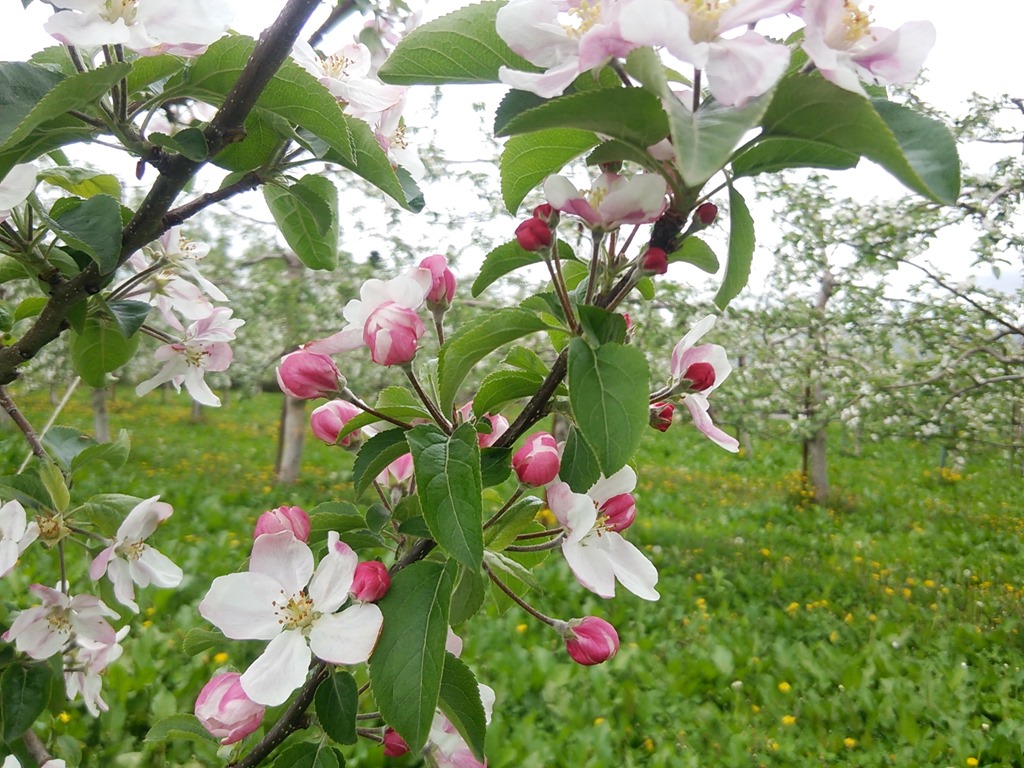 市内北吉野にある「三谷果樹園」ではリンゴの花が満開になっています。