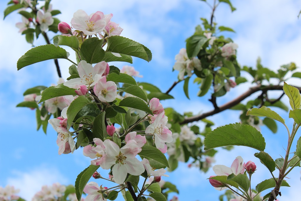 今回、リンゴの花をUPするのに少々ウェブ散歩をしていると面白い記事を見つめました。「どうしん ウェブ 砂川でブルーベリー狩り 心地よい酸味と甘み」にリンクします。