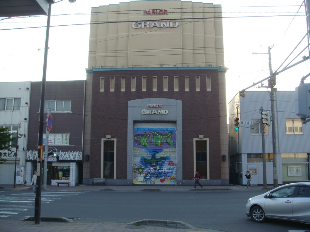 先日も紹介した駅前の以前パチンコ店だった大きな空き店舗の大きなシャッターに絵を描こうと言うイベント開催中です。