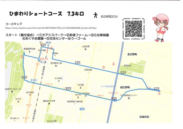 砂川観光協会では、新型コロナウイルス感染症拡大の影響で、市内のイベント等がほとんど中止になっていますが、少しでも砂川に来ていただき、砂川を楽しんでいただくために砂川の観光スポットをウォーキングして楽しんでもらう企画「すながわ FREE WALK」を実施中。