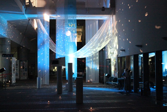 いつもの交流ゾーンとは違った、とても幻想的な雰囲気で、外に見える砂川駅のホームも景色に溶け込んでいました。