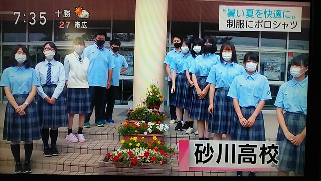 「暑い夏を快適に」と題して、砂川高校の制服にポロシャツが加わった話題でした。