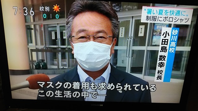 インタビューに答えて小田島校長先生は『マスク着用も求められているこの生活の中で、少しでも涼しさを求められる制服を用意できたことはとてもうれしい』と答えられていました。