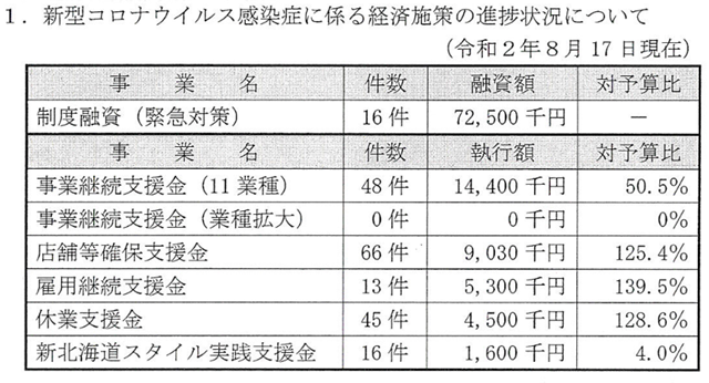 上の表は8月17日現在の進捗状況ですが、特に7月31日の臨時議会で可決した経済対策2つの執行状況が悪いです。改めてお知らせします。