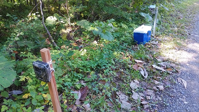 これはもしかして・・・。と近づいてみると何やら小さな音で「ジッ!」と鳴って、ピカッと光ります。これはクマの忌避装置に違いない。