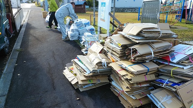 昨日は晴見町内会の「廃品回収」でした。4月から12月までの偶数月におこなっています。午前8時30分までに公園に持ってきてもらうか、家の前に出してもらえると集めて回る仕組みです。