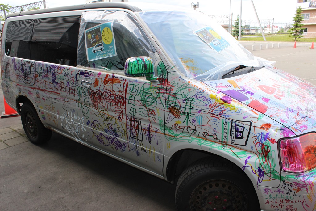 車に落書きもご覧のよう。『良い子の皆さん!決して他で真似をしないでくださいネ!!』