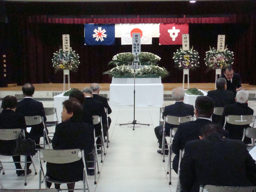 上の写真は本日、午前10時30分から総合福祉センターで開かれた「砂川市戦没者・殉職者慰霊式」の様子です。