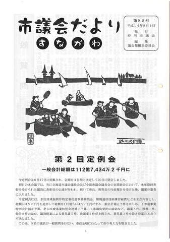 上は平成14年6月議会の議員自らが作った「市議会だより すながわ」です。以前のと比べるとだいぶ読みやすくなったと思います。