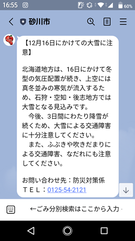 〈砂川市からのLine情報〉