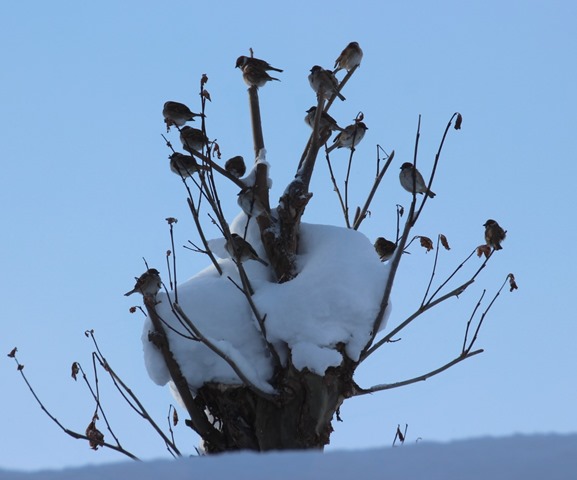 スズメの成る木です。冬のスズメはマルマルとしていて可愛いです。