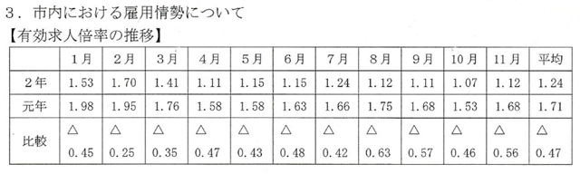 また、同時期における休職者数は305人で前年は252人との報告でした。なお、ハローワーク砂川の管内は砂川市、歌志内市、奈井江町、上砂川町ですので、砂川市のみではありません。
