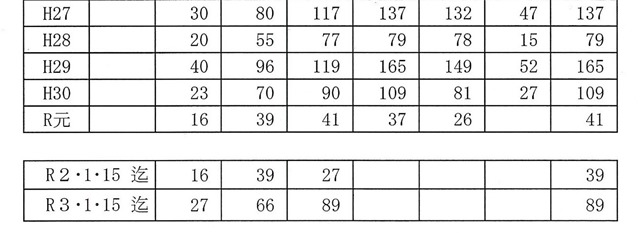 上の表は「降雪量」で年度の次の空欄以降は右に11月、12月、1月、2月、3月、4月、合計です。降雪量の1月15日現在では『異常なほど雪が少なかった』と言われている昨シーズンの方が多く降っています。