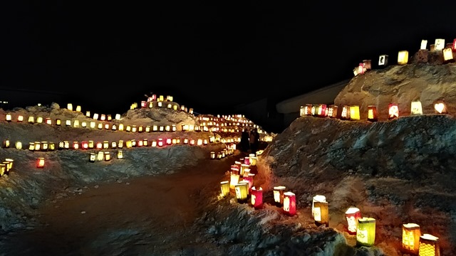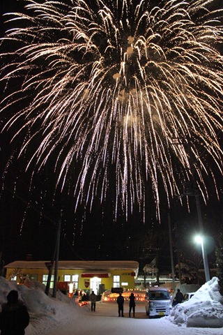 昨日は午後6時に滝川市江部乙町に「紙袋ランターン」と「冬の打ち上げ花火」を見てきました。