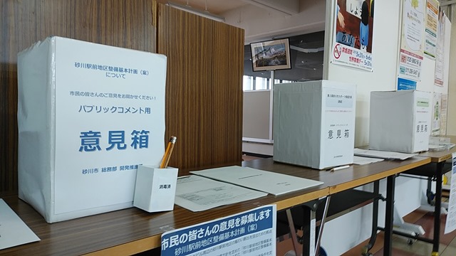 昨日の更新は「砂川駅前地区整備基本計画(案)」へのパブリックコメント募集の件でした。