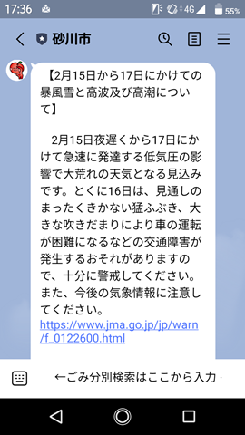 ところが夕方に砂川市からラインが届いて、その内容にビックリです。