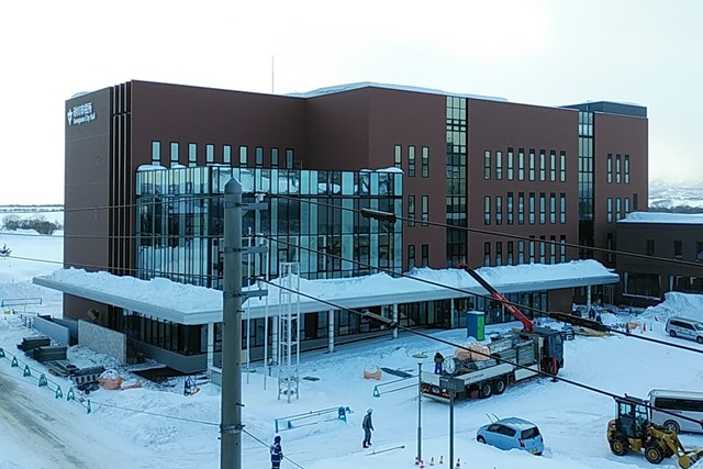 新庁舎の一階部分に掛かっていたシートが取り外され全貌が明らかになりました(ちょっと大袈裟か)。
