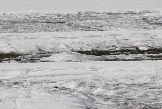 美唄市も雪が多かったので、田んぼに融雪剤を散布してある、ほんの僅かに土が出ている所に白鳥を発見しました。いつもだと相当な数がいたはずですが・・・。