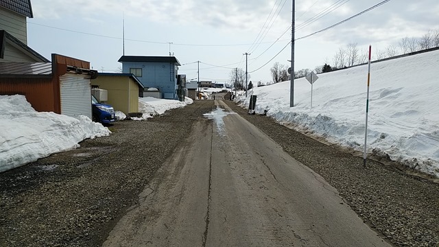 JR函館本線のガードをくぐる市道南1丁目との交差点はクランクが解消されS字カーブの道路になりました。東一線側が一時停止です。