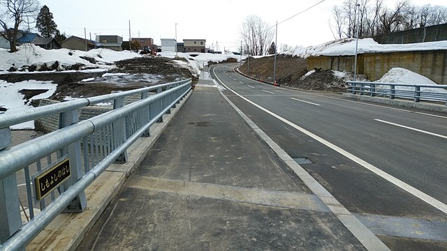 下吉野橋も完成し、橋そのものが以前より低くなったため道々上砂川線への坂道も勾配がかなり緩くなりました。
