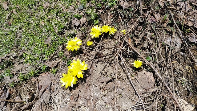 野生の福寿草を日当たりの良い斜面で見つけました。