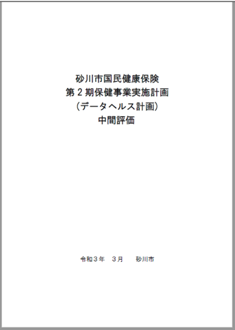 平成30年度から令和5年度を計画期間とする、「第2期保健事業実施計画(データヘルス計画)」の中間評価が砂川市のHPに掲載されています。