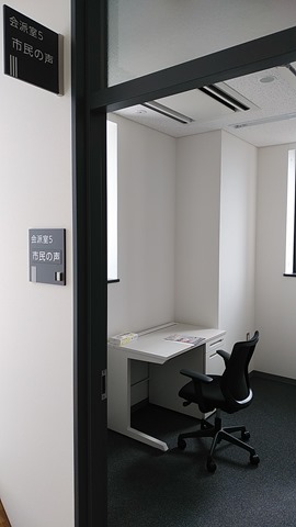 私は現在、一人で「市民の声」として活動しています。新しい議員控室は新庁舎の南西の角の部屋。