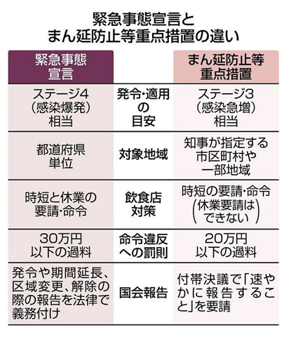 これまで札幌市に出されていた「まん延防止等重点措置」と今回出される緊急事態宣言の違いは