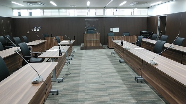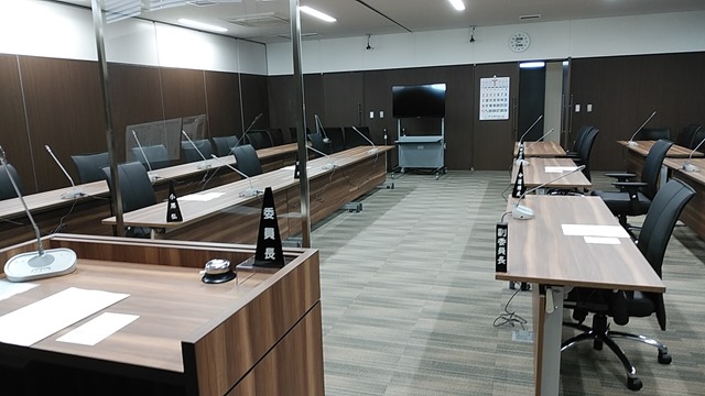 委員長席側からはこんな感じ。マイクも設置されましたが、その内慣れるでしょう。