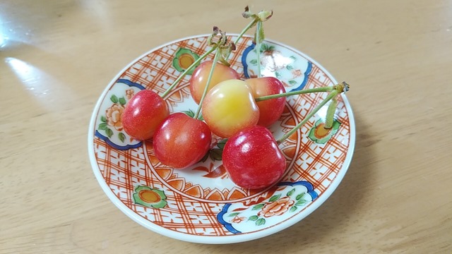 これが見事に効果を発揮。数は少ないですが、赤くなったサクランボ「可愛い!」です。