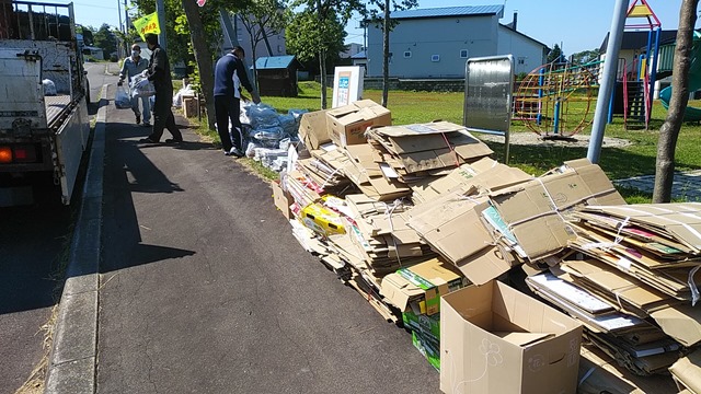 本日は晴見町内会の廃品回収の日。朝方はあまり気温も上がらず、4月の最初の廃品回収よりも量も少なく、業者さんのトラック積み込みも多少楽でした。