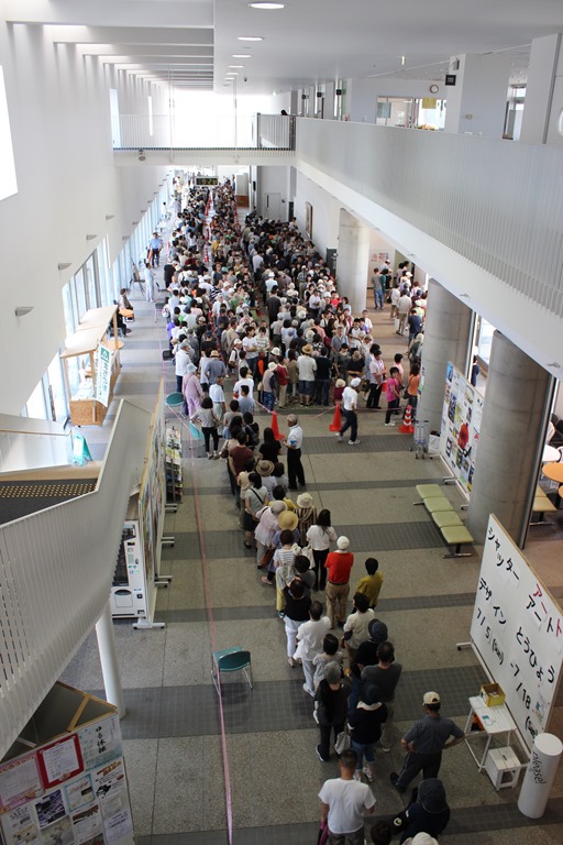 本日も砂川は暑かったです。そんな中、地域交流センター「ゆう」では長~い行列が出来ました。上の写真の商品券を買い求めるためです。