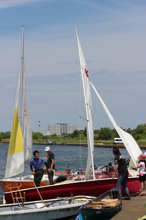抜けるような青空の下、オアシスパークは水の乗り物で賑わっていました。毎年開催されている石狩川の親水イベントですが、石狩川下覧櫂(いしかりがわくだらんかい)の主催で水上体験学習が行われていました。