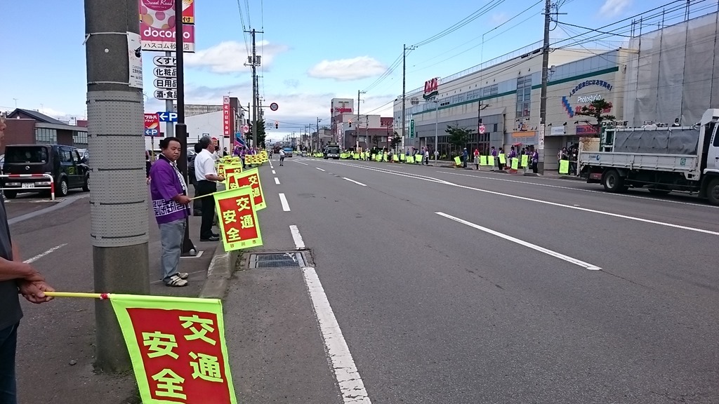 上の写真ですが、午前11時30分から新すながわ農協スーパー前周辺で行われた「砂川市民を交通事故から守る一斉旗の波運動」の様子です。