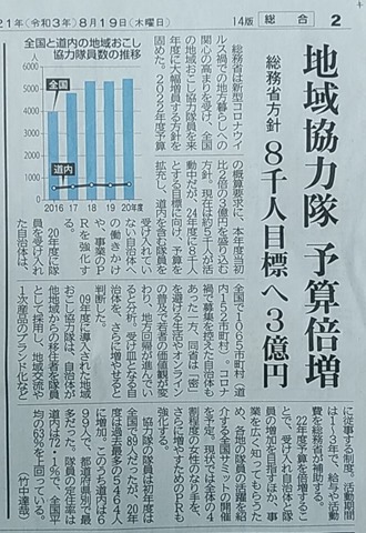 19日付の道新に「地域おこし協力隊」の事が書かれていて興味を惹かれました。
