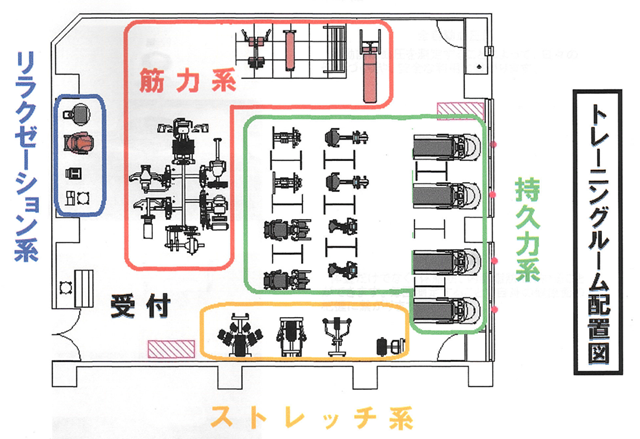 トレーニングルームの配置図は下記のようです。
