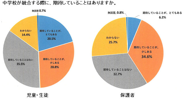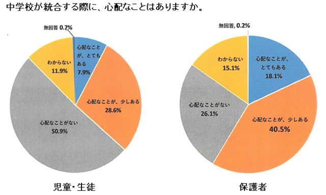 アンケートの対象者は中学の統合時に直接関係する市内5校の小学5・6年生と2校の中学1年生で、総児童・生徒数は337名と保護者337名です。