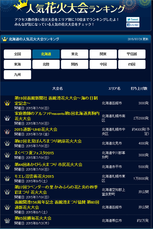 上は北海道の人気花火大会ランキングですが、何と!北海道で第6位に登場しています。打ち上げ数も近隣では一番多い5000発でした。スターマインの連続は見事でした。