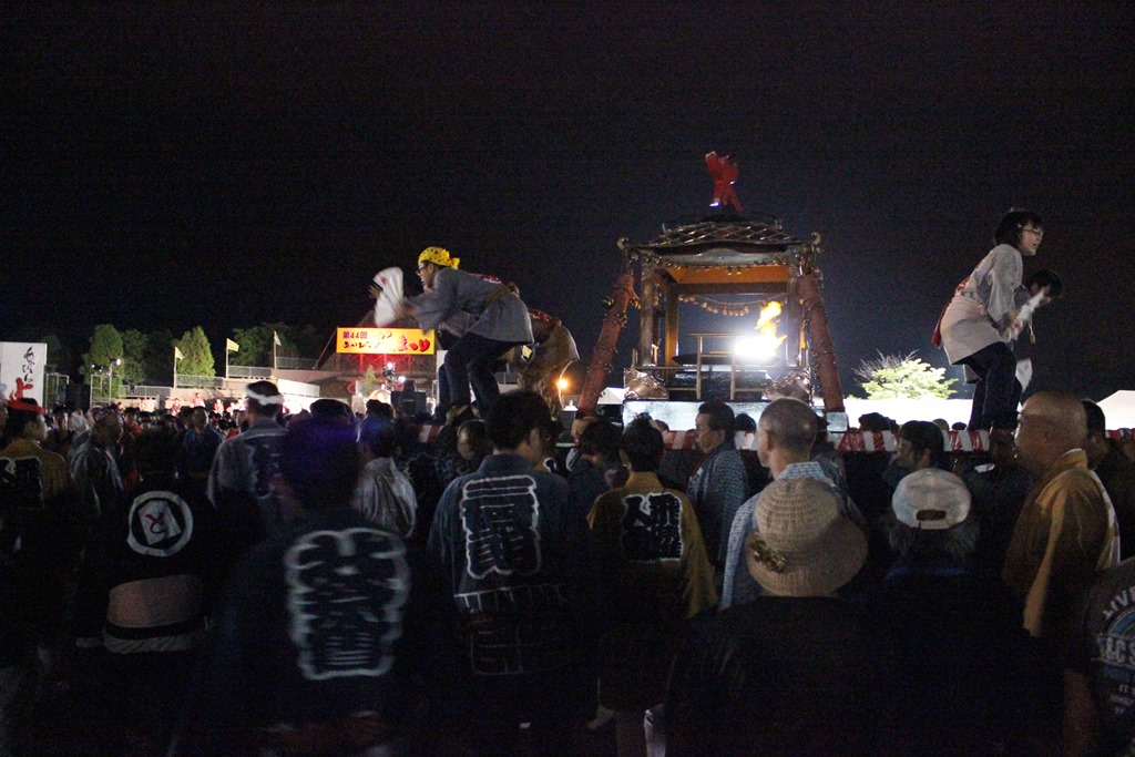 火まつりのフィナーレは「火神輿」です。会場の赤平市コミュニティ広場はけっこう広いですが、溢れんばかりの人、人、人。